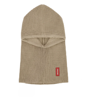 Cagoule Hello Hossy pour bébés, Hoody Latte. Douce et bien couvrante, elle accompagne les petits dès 9 mois. Maille unie, en coton bio certifié Oeko-Tex, ajustable et 2-en-1. L’accessoire préféré des kids cet hiver.