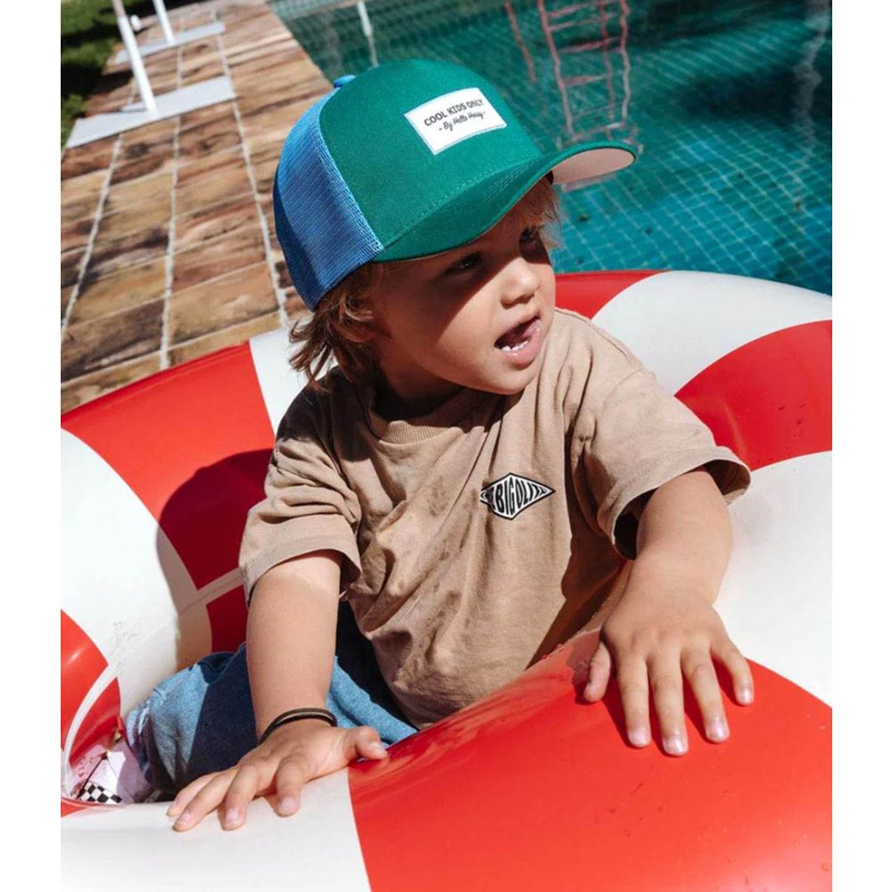 Découvrez la Casquette Hello Hossy pour enfants et bébés, Mini Lawn, dès 9 mois. Style trucker iconique, couleur vert tendance, visière courbée. Disponible aussi en tailles papa, y a de quoi faire de beaux looks duos et trios ! À porter en famille.
