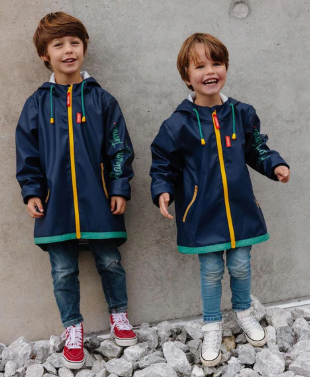 Découvrez le Ciré de Pluie pour bébés et enfants, Night. 100% imperméable, coloré, parfait pour les journées pluvieuses. Capuche ajustable, poches pratiques, zip large : le combo parfait pour les crapules dès 2 ans, disponible en deux tailles