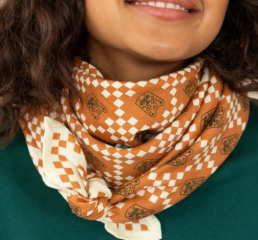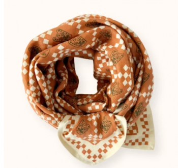 Osez le look sauvage avec le Big foulard Latika TIGRO en version camel ! Son motif tigre stylisé et ses détails graphiques apportent force et élégance à vos tenues. En 100 % coton et au format généreux, il se noue à l’infini.