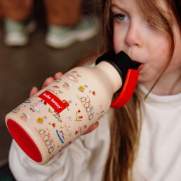 Découvrez la Gourde Isotherme pour enfants, Amsterdam de la marque Hello Hossy. Anse adaptée aux petits, utilisation avec (ou sans) paille, base anti-dérapante. Tout a été pensé pour convenir aux Cool Kids Only ! 100% isotherme : 12h chaud, 24h froid. Modèle unique, déposé par Hello Hossy®.