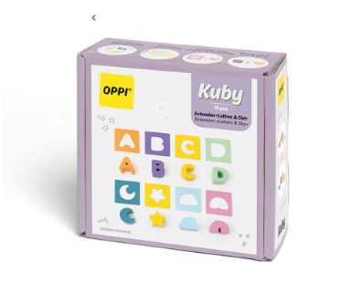 L’extension Kuby « Lettres & Ciel » est spécialement conçue pour prolonger et enrichir l’expérience de jeu avec le jouet Kuby. Dotée de nouvelles formes thématiques, elle invite les enfants à explorer, associer et imaginer davantage. Grâce aux formes ABCD et à celles inspirées du ciel (arc-en-ciel, nuage, étoile et lune), ces pièces supplémentaires stimulent leurs apprentissages tout en renforçant la logique et la motricité fine. Ce kit n’inclus pas le cube en bio-silicone.