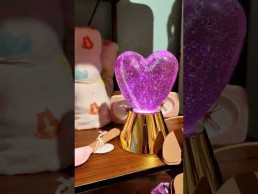 La lampe à paillettes sort en forme de coeur rose, remplie de paillettes dorées !