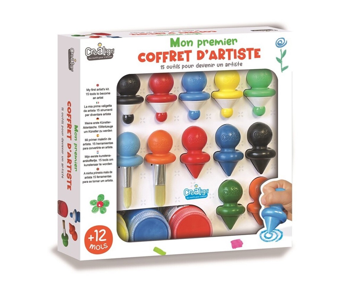 « Mon Premier Coffret d’Artiste » de Crealign est le kit créatif idéal pour que les enfants explorent le monde de la couleur et de l’expression artistique dès l’âge de 1 an. Conçu pour leurs petites mains, ce coffret complet comprend des matériaux sûrs, lavables et adaptés à leur âge.