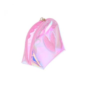 Avec sa forme ronde et ses reflets holographiques et le joli cœur en reliefs à paillettes, ce petite porte monnaie trousse iridescent va capter la lumière et attirer tous les regards.