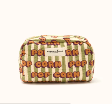 Craquez pour la petite trousse Apaches Gaya en coton matelassé imprimé « Pop Corn » Olive. Avec sa petite forme pratique, elle est idéale pour transporter vos essentiels comme votre maquillage ou encore les feutres et trésors de vos kids. Elle sera parfaite pour vous accompagner partout !